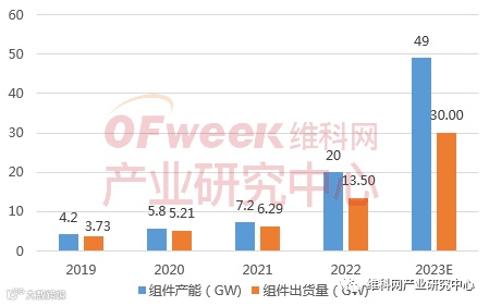 根据通威2022年年报显示,2022年组件销售量7.94GW,同比增长226.06%,2022年跻身全球组件出货量前十,排在第九位。同时,今年5月盐城25GW光伏组件首件顺利下线,金堂、南通组件项目建设如期进行,根据公司的规划,到2023年底,组件产能将达到80GW,出货量预计为35GW,行业排名有望再上一个台阶。