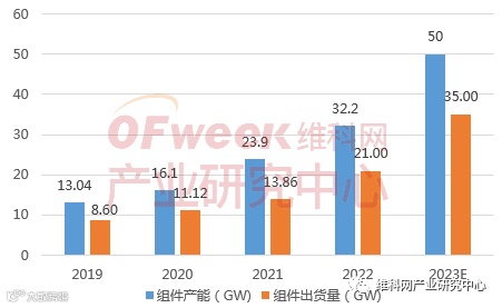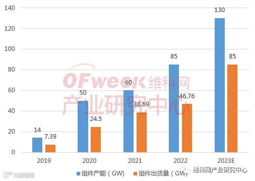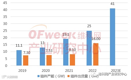 图1 2019-2023年隆基绿能组件产能及出货情况