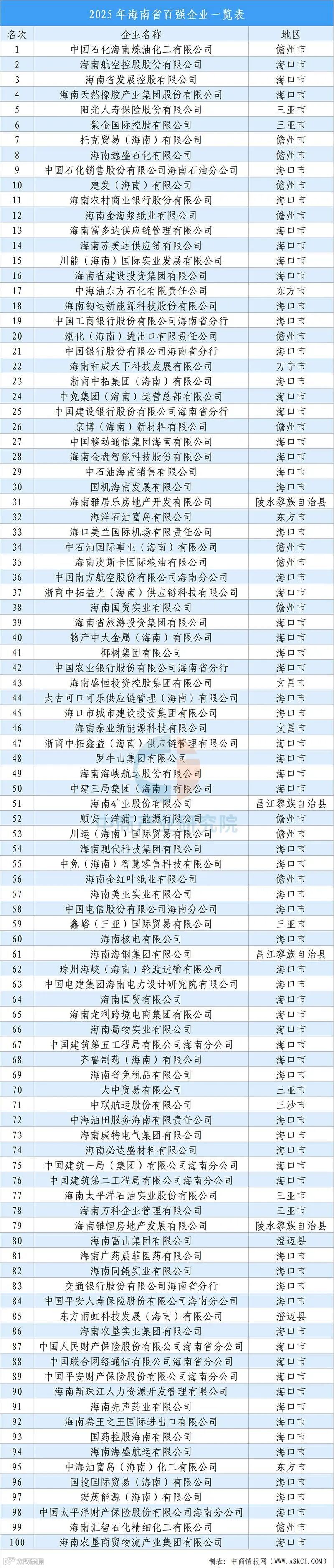 从入围门槛看,2025海南省企业100强入围门槛为营业收入19.39亿元,比上一年度17.13亿元的入围门槛大幅提高2.26亿元。自海南省于2006年开展百强企业排名以来,百强企业入围门槛已连续20年保持增长势头,这是今年海南百强企业排行榜的一大亮点,也是海南自贸港建设成效的体现。从营业收入看,2025海南省企业100强实现营业收入达8564.42亿元,较上年增加232.76亿元,增长2.8%。其中,50亿元以上营收企业40家,较上年减少4家,但营收总额为6563.53亿元,占百强企业营收总额77%;100亿元以上营收企业17家,较上年减少1家,营收总额为4948.17亿元,占比58%。