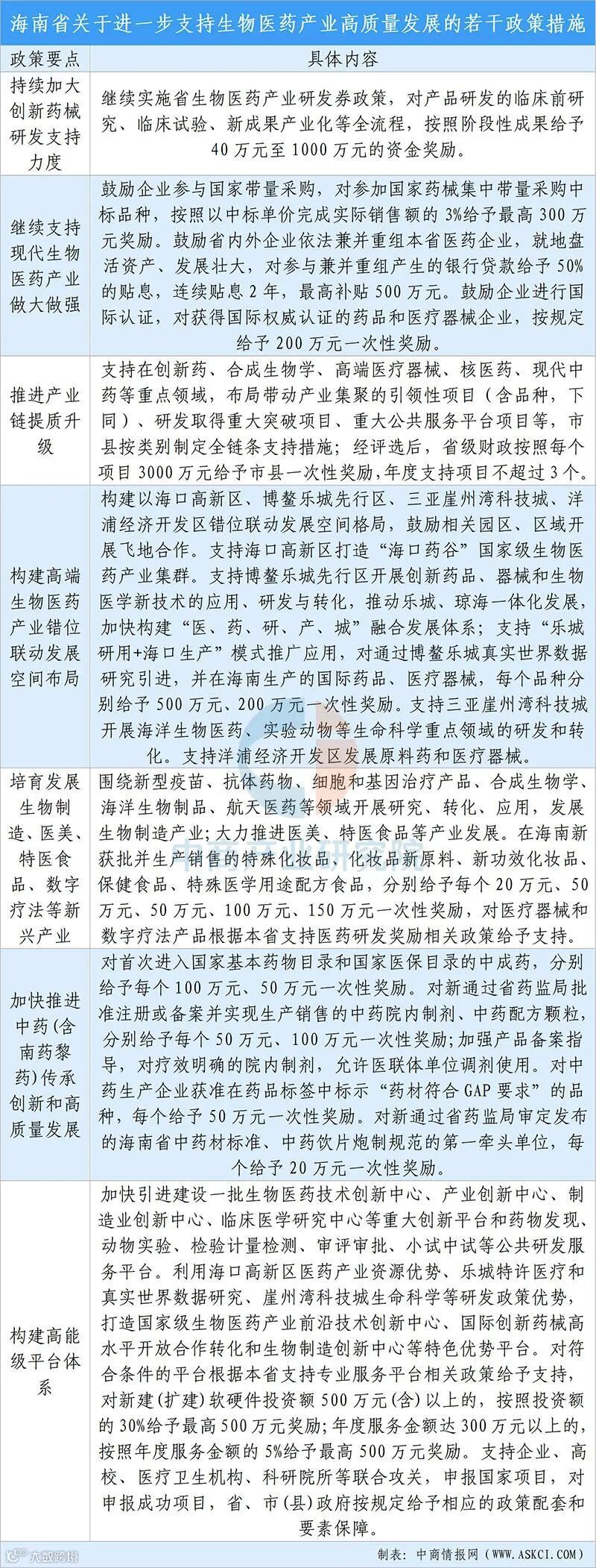 (二)《海南省关于进一步支持生物医药产业高质量发展的若干政策措施》