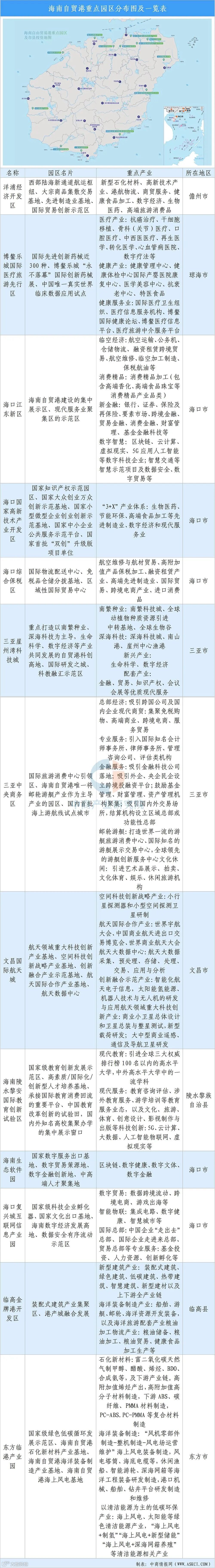 海南自贸港重点园区包括:洋浦经济开发区、博鳌乐城国际医疗旅游先行区、海口江东新区、海口国家高新技术产业开发区、海口综合保税区、三亚崖州湾科技城、三亚中央商务区、文昌国际航天城、海南陵水黎安国际教育创新试验区、海南生态软件园、海口复兴城互联网信息产业园、临高金牌港开发区、东方临港产业园。