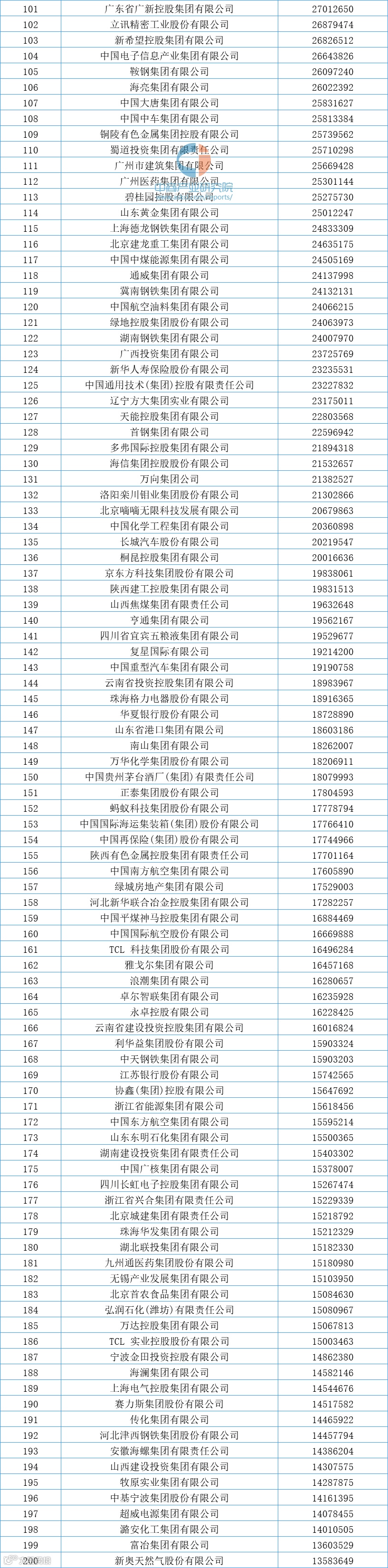 从排名来看,国家电网营业收入最高达39459.28亿元,中国石油、中国石化排名第二和第三,营业收入分别为29690.48亿元、29319.56亿元,中国建筑、工商银行、农业银行、建设银行、中国银行、中国中铁、京东进入前十,依次排名第4-10名。