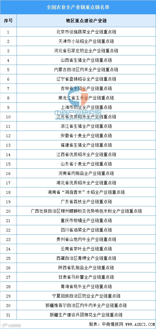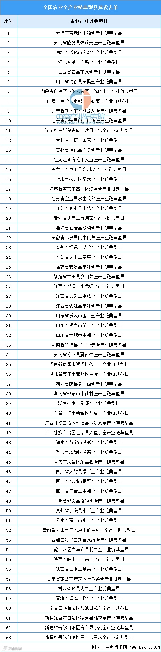 中商情报网讯:农业全产业链建设是贯通产加销、融合农文旅、对接科工贸、拓展农业多种功能、促进乡村产业高质量发展的重要途径。近日,农业农村部发布《全国农业全产业链重点链和典型县建设名单》,确认开展建设北京市设施蔬菜等31个全产业链重点链、天津市宝坻区等63个全产业链典型县,提出建设农业全产业链重点链和典型县要聚焦增强主导产业全产业链优势,完善联农带农利益联结机制,优化产业上中下游协同发展机制,推动全产业链转型升级,成为农业全产业链建设典型标杆,把产业链主体留在县域,让农民更多分享全产业链增值收益。