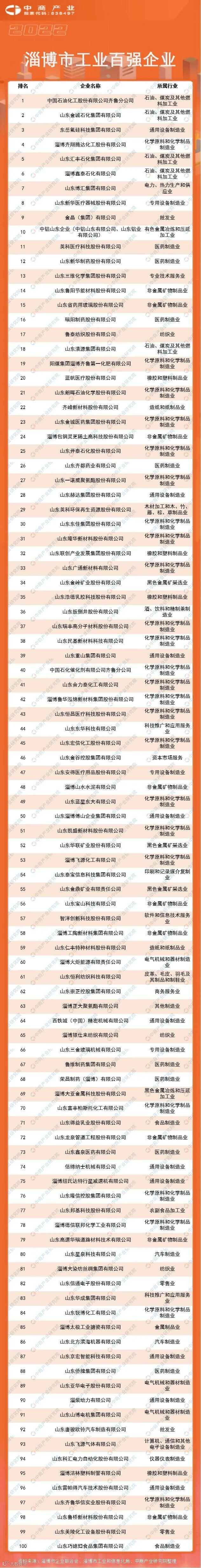 近日,淄博市企业联合会、淄博市工业和信息化局发布了“2022淄博市工业百强企业名单”。