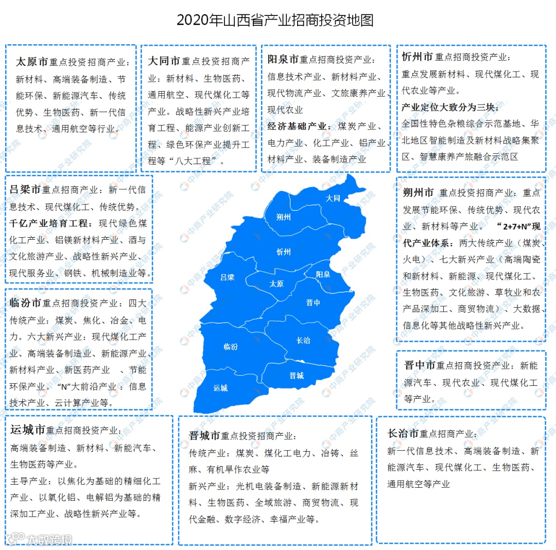 招商引资是经济增长的外在动力,在经济工作中具有重要支撑作用。为此中商产业研究院整理出2020年山西省各地产业招商投资地图,给广大投资者及政府招商工作者提供参考: