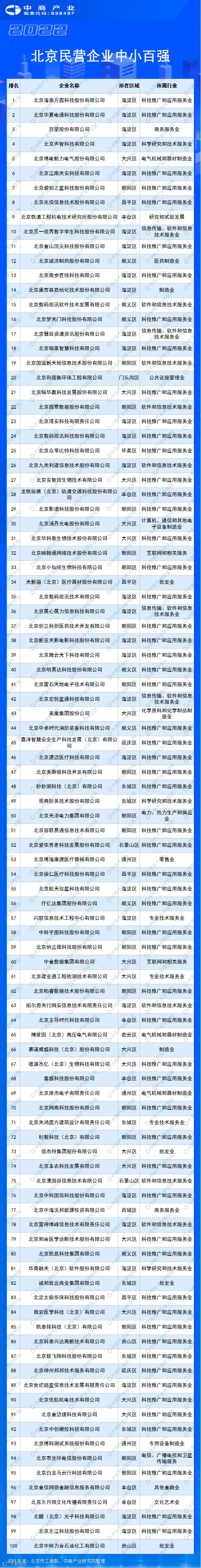 2022北京民营企业中小百强榜单