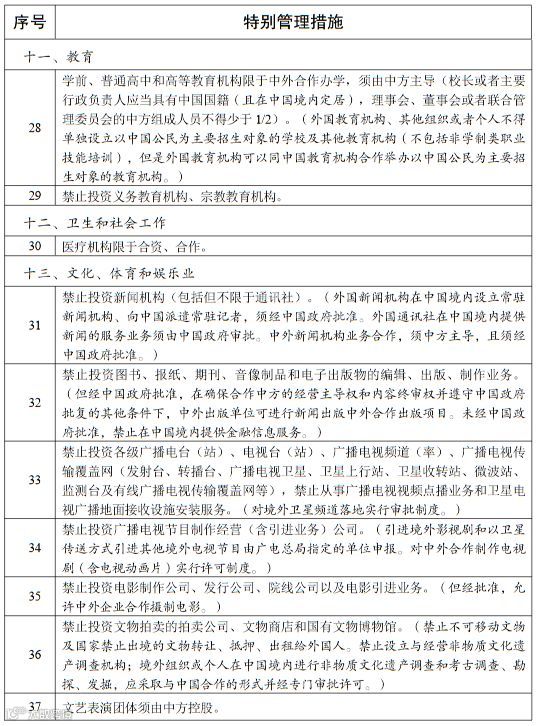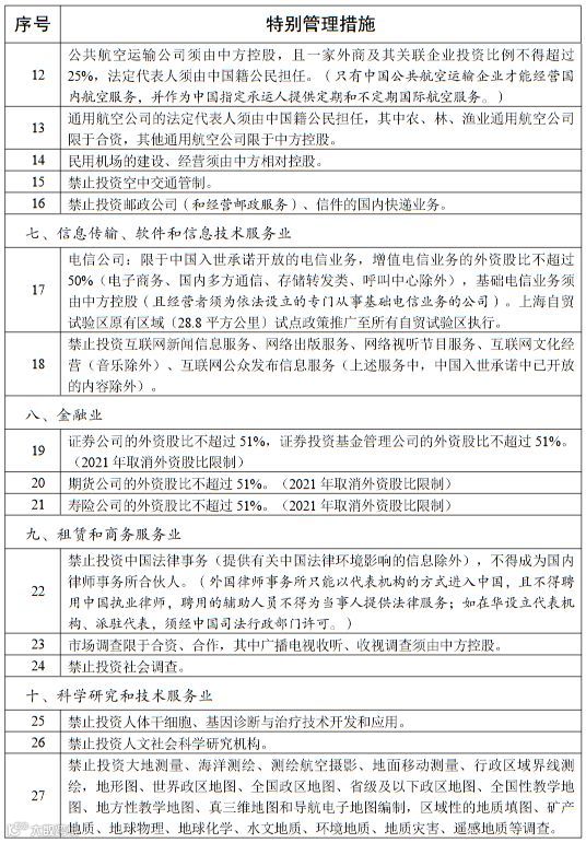6月30日,国家发改委、商务部联合发布了《自由贸易试验区外商投资准入特别管理措施(负面清单)(2019年版)》,负面清单于2019年7月30日起施行。据了解本次修订负面清单统一列出股权要求、高管要求等外商投资准入方面的特别管理措施,适用于自由贸易试验区。《自贸试验区负面清单》之外的领域,按照内外资一致原则实施管理。另外,还对部分领域列出了取消或放宽准入限制的过渡期,过渡期满后将按时取消或放宽其准入限制。试验区外资准入负面清单条目由45条减至37条。