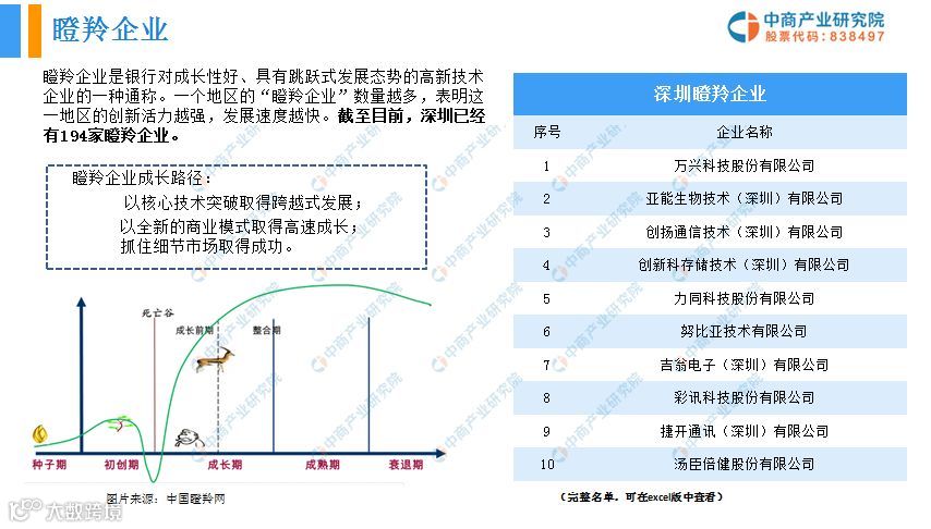 1、深圳市194家瞪羚企业具体名单、83家千里马企业、独角兽企业名单。