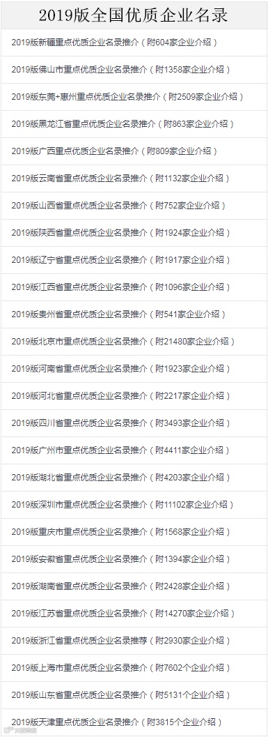 招商情报库(askplan)自成立以来,便专注于资本时代下的招商引资工作,为各地区政府、产业园区提供了许多重要的招商资源。为了让大家寻找到更多、更好的合作机会,招商情报库(askplan)特整理了全国各地区的优质企业名录,企业总数超过10万家,供大家参考,点击文末的“阅读原文”即可查看和下载各地区优质企业名录!