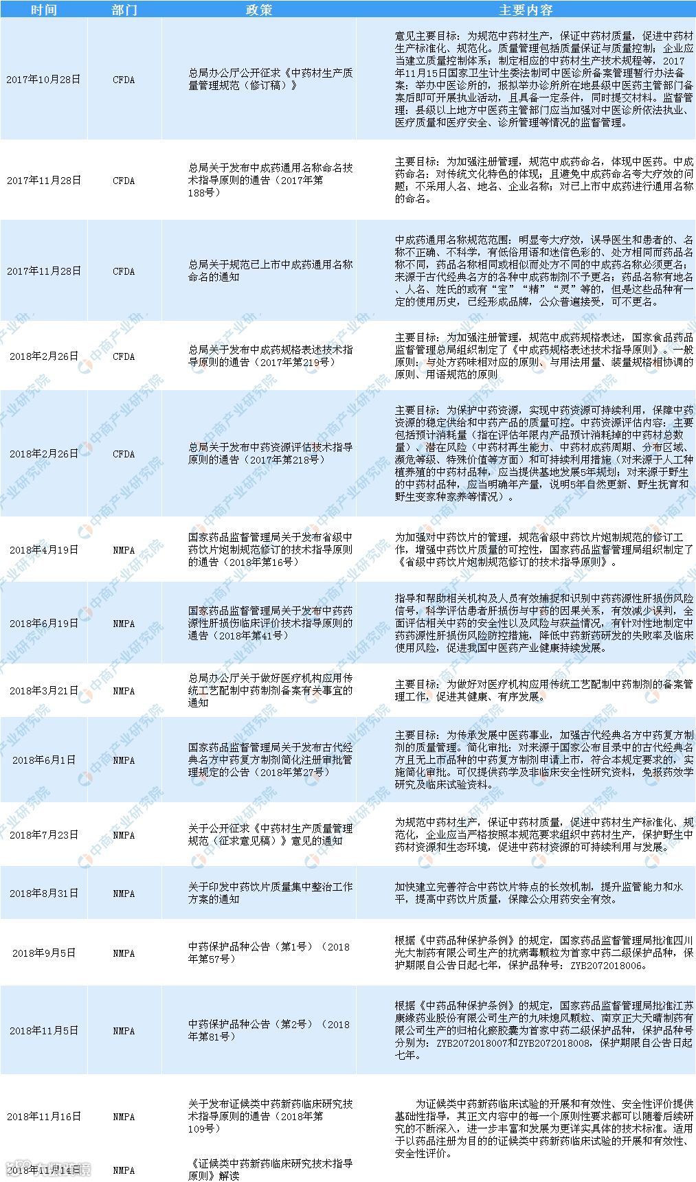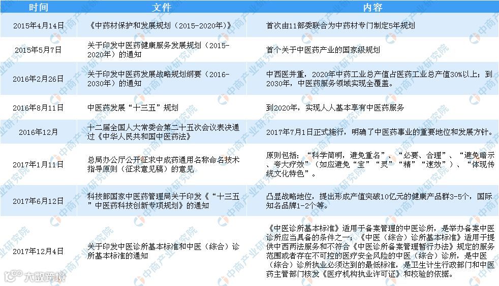 附:医药行业中医药主要政策一览: