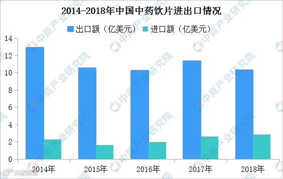 中药饮片行业作为传统中药产业三大支柱产业之一,成为医药工业里近十年增长最快的子行业。受益于国家对中医药产业的重视,中药饮片在医疗改革大潮中迎来利好。预计2020年中医饮片市场规模将有望达3920亿元。2018年我国药材及饮片出口额为10.31亿美元,同比下降9.49%。2018年我国药材及饮片进口额为2.85亿美元,同比增长9.16%。