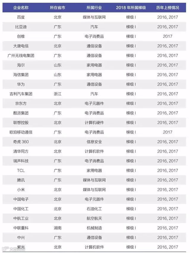 中商情报网讯:近日,《2018年中国大陆创新企业百强》报告发布。据报告显示,进入2018年中国大陆创新企业百强榜单的包括:百度、比亚迪、腾讯、华为、阿里巴巴、海尔、海信、美的等100家企业。据了解,2018年中国创新百强所涉及的行业从去年的24个增至26个。其中,信息安全、农业及仪器仪表行业新晋上榜。榜单上的企业仍然主要分布在电子元器件、通信设备、媒体与互联网等高新技术行业;机械制造、汽车、电力设备等工程行业;以及消费品、医疗等其他行业。上榜企业数量最多的三大行业是电子元器件业、电子消费品业及机械制造业,其中电子元器件业以10家蝉联榜首。紧随其后的是电子消费品业及机械制造业,均有9家企业上榜。电子元器件业作为蓬勃发展的朝阳产业,之所以能继续领跑今年榜单,因为电子技术不仅是通信设备和电子消费品等诸多高新技术行业的创新推动力,而且还广泛应用于家用电器和智能汽车等领域。