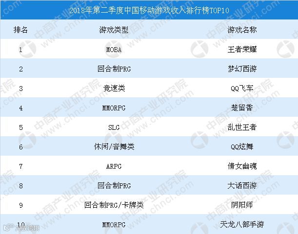 在2018年第二季度中国移动游戏收入排行榜中,排名第十的游戏分别为王者荣耀、梦幻西游、QQ飞车、楚留香、乱世王者、QQ炫舞、倩女幽魂、大话西游、阴阳师以及天龙八部手游。