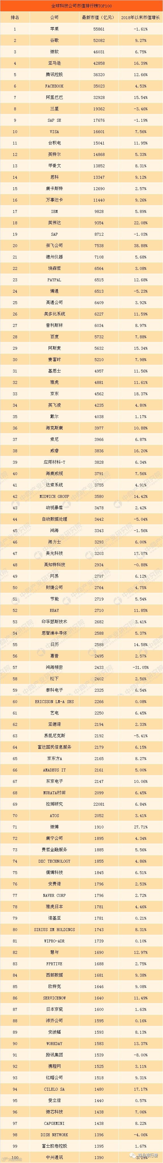 全球十大市值科技巨头分别为苹果、谷歌、微软、亚马逊、腾讯控股、FACEBOOK、阿里巴巴、三星、SAPSE以及VISA。