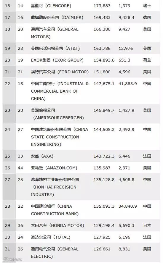 利润榜的前五名除了排在第一位的苹果公司,其余均为中国的商业银行——工商银行、建设银行、农业银行和中国银行。但对它们而言,似乎是利润和规模难以兼得,包括苹果在内的这五家公司收入均有大幅下滑。
