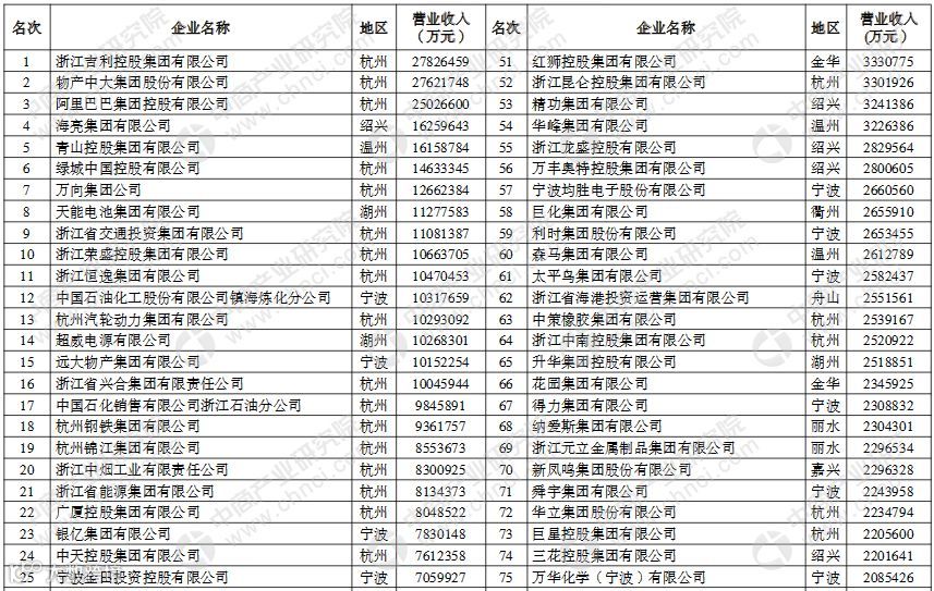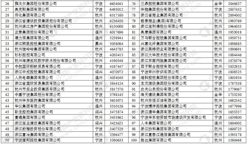 2018年浙江省百强企业榜单