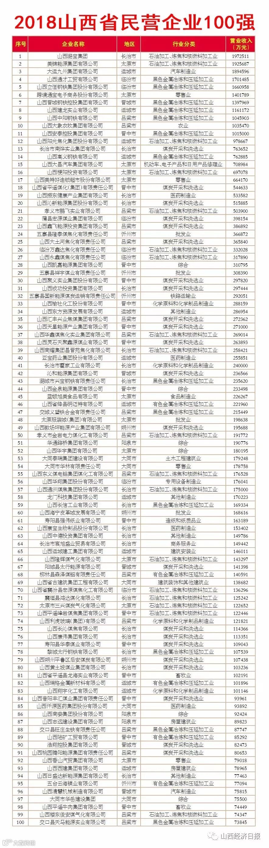 9月14日,由山西省工商联主办,中国民生银行太原分行承办的“2018山西民营企业100强”发布会在太原召开。会议发布了2018山西民营企业100强、山西民营企业制造业30强、山西民营企业服务业20强榜单和百强企业分析报告。
