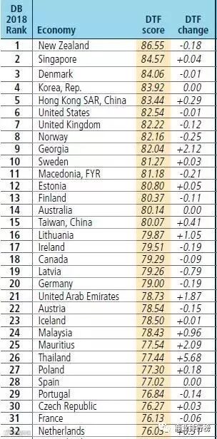 世界银行以扶持中小企业为主要目的,每年分析各国和地区的融资环境、电力供应、税制等10个项目并公布排名。在最新公布的《2018年全球营商环境报告》中,新西兰连续第二年排名榜首,新加坡则排名第二,丹麦第三。