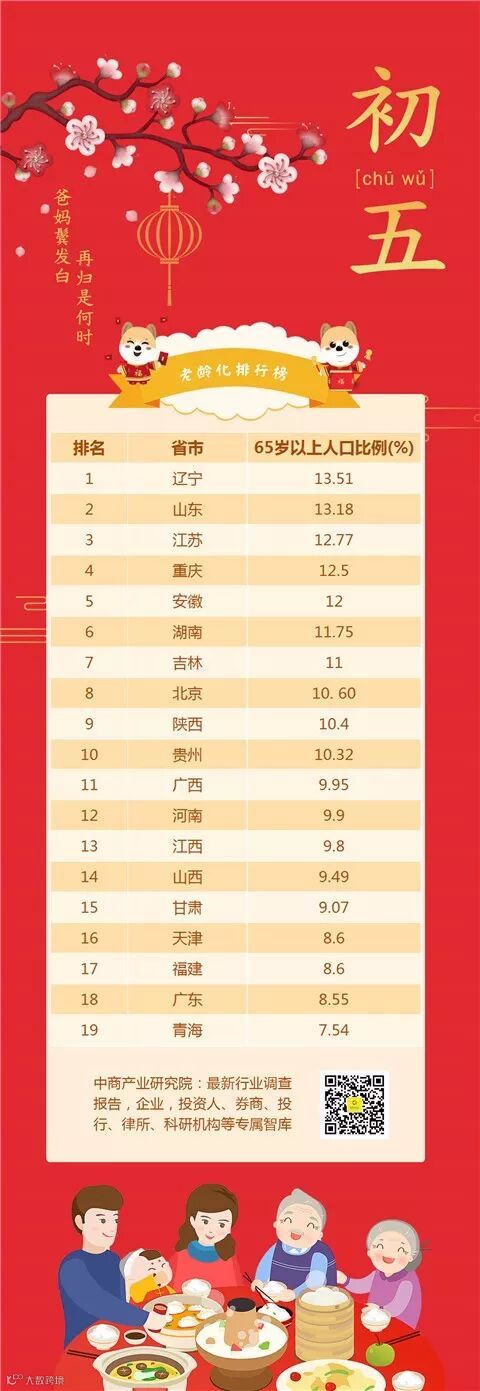 全国各省老龄化排行榜