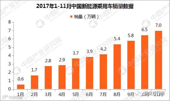2017年11月,新能源狭义乘用车销量达7万辆,同比增长131.4%;1-11月,累计销量已达44.51万辆,同比增长108.2%。