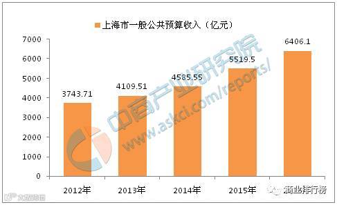 2016年,上海市一般公共预算收入为6406.1亿元,同比增长16.1%。2016年上海财政收入保持高速增长主要得益于自贸区改革红利不断释放,科技创新的引领作用不断增强,特别是金融等服务业快速发展。2016年,上海第三产业增加值19362.34亿元,增长9.5%。第三产业增加值占全市生产总值的比重达到70.5%,比上年提高2.7个百分点。其中金融业增加值4762.50亿元,增长12.8%。信息传输、软件和信息技术服务业增加值1618.58亿元,增长15.1%。