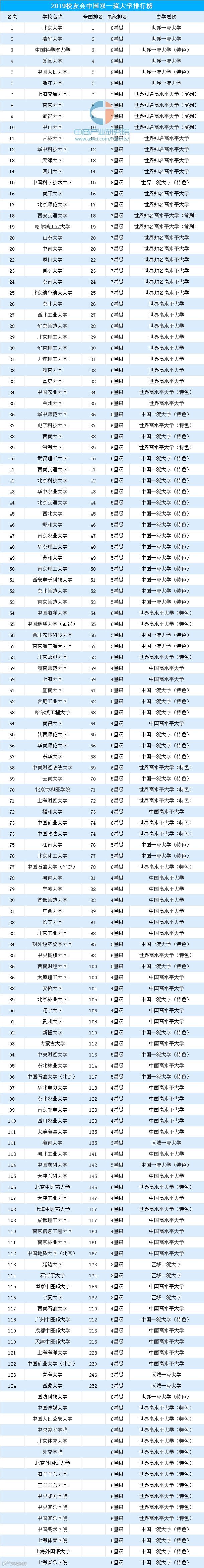 日前,艾瑞深中国校友会网最新公布2019中国双一流大学排行榜。全国87所双一流高校跻身全国100强,8所高校未能跻身200强。