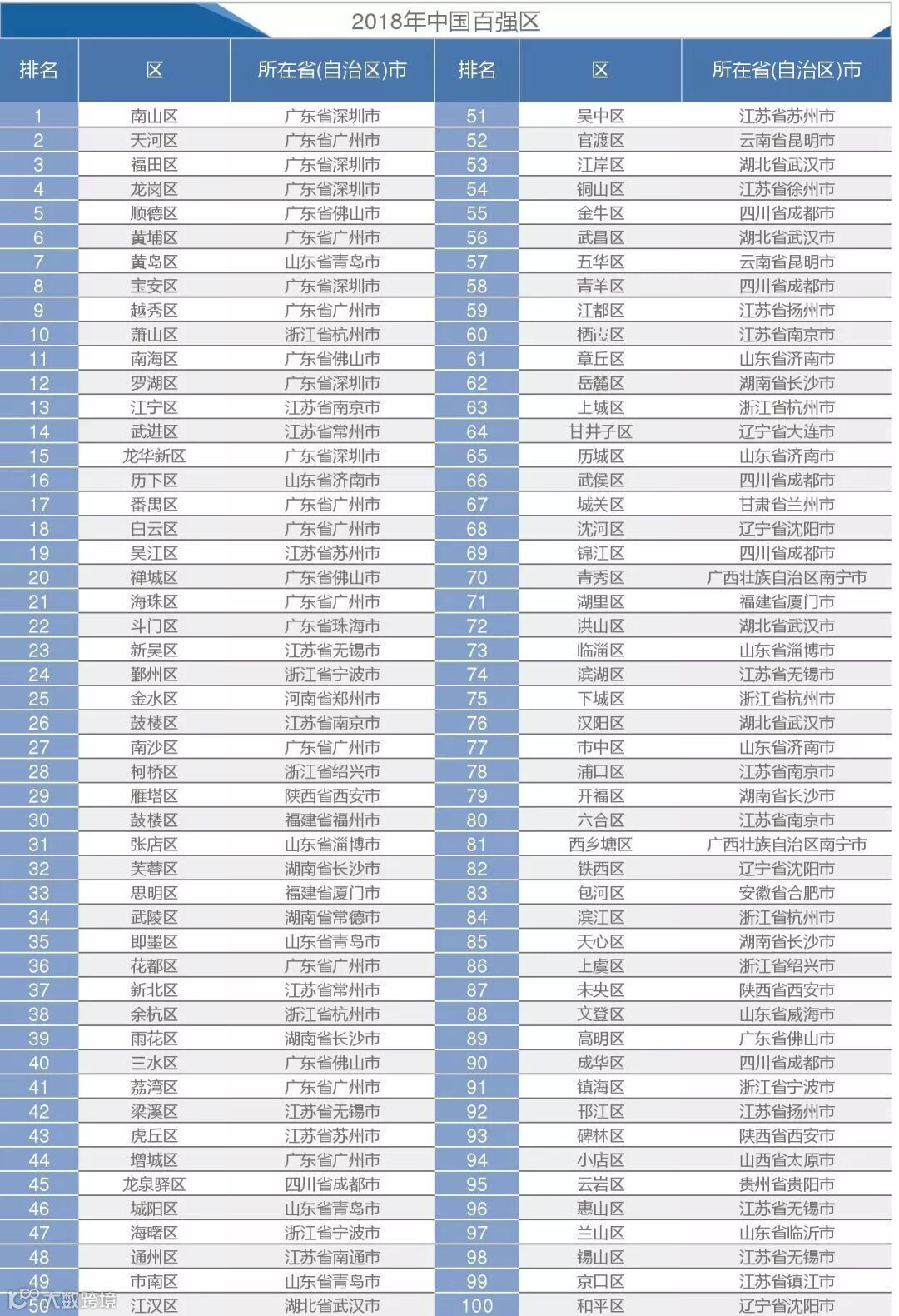 2018中国百强区榜单
