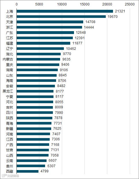 2018上半年31省份居民人均消费支出排名