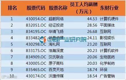 北京184家创新层公司员工人均薪酬TOP10