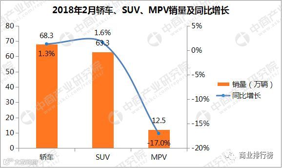 2月,轿车和SUV同比零售增速都在1%左右,但MPV零售同比仍下滑17%。综合看,2018年1-2月累计零售增速达5%,较17年的1-2月的负增长2%的改善较大。