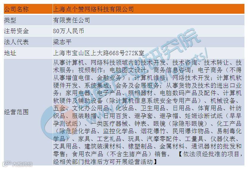3、上海点个赞网络科技有限公司