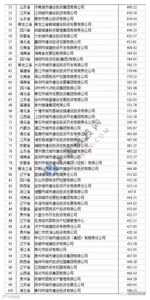2017年9月5日,由中国城投网和中国现代集团组织的“城投公司百强榜单发布会暨转型研讨会”在北京举办,中国城投公司百强排名榜在会上正式出炉。