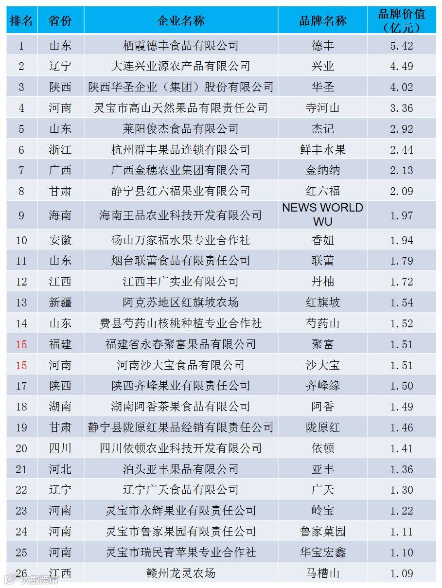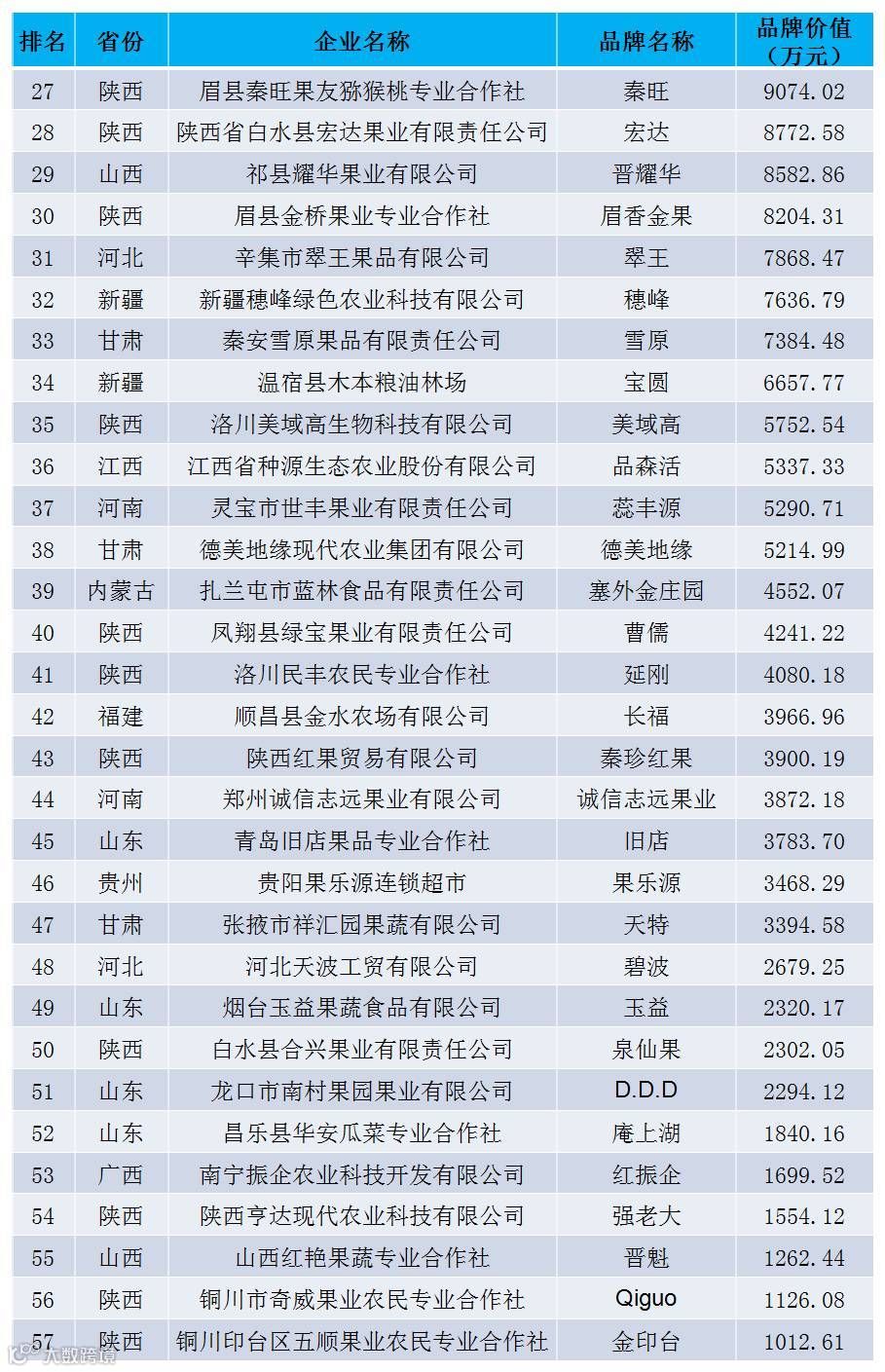 声明:本研究中所估算之品牌价值,均基于果品品牌持有单位提供相关数据及其他公开可得信息,运用“中国农产品企业产品品牌价值评估模型”对采集数据的处理结果。本次仅公布品牌价值在千万元以上的品牌。