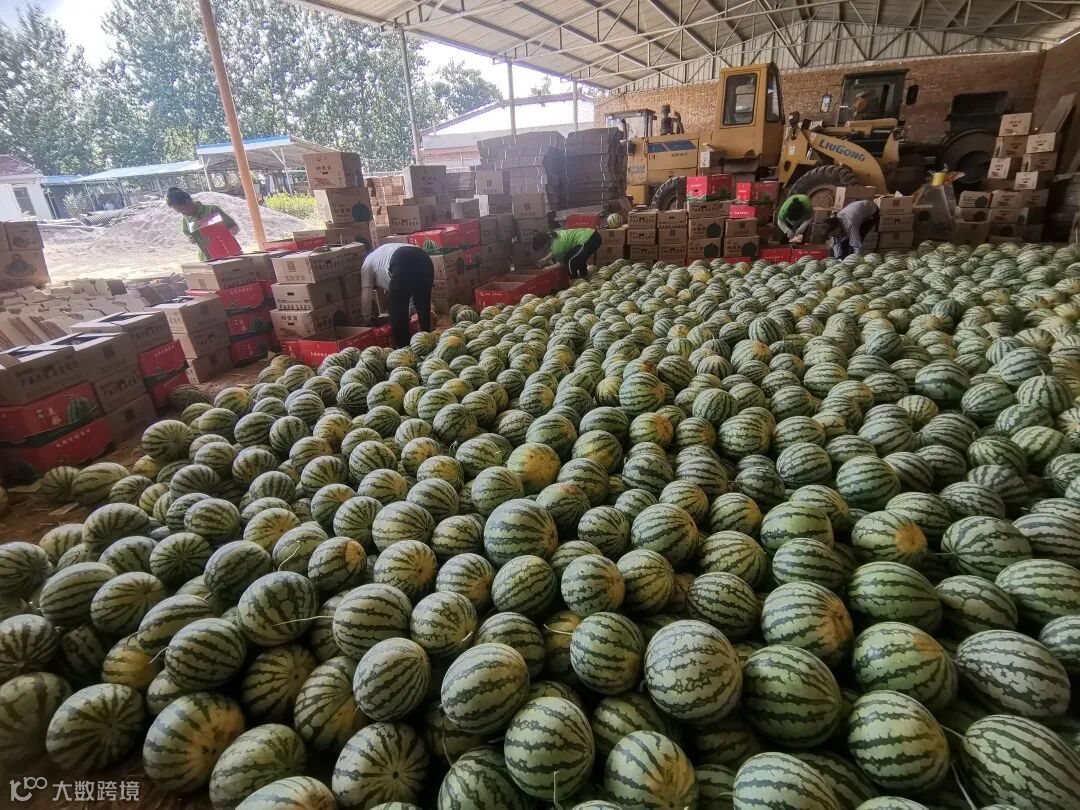 经过整整一天的精心挑选,我们从西瓜地里精选出来了数千枚大西瓜,终于在历经一晚上的运输之后到达了他们的目的地,送到国机集团一线职工们的手中。