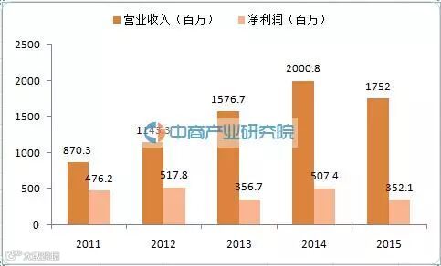图表:2011-2015年瀚华金控收入和净利润趋势图