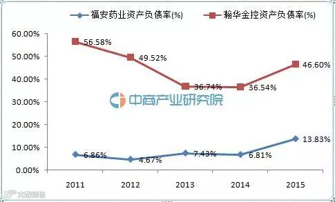 图表:2011-2015年瀚华金控与福安药业资产负债率比较