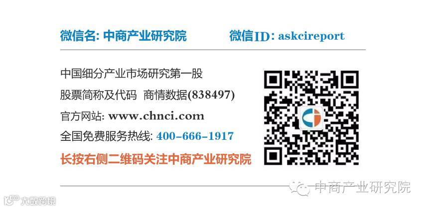 中商产业研究院是深圳中商情大数据股份有限公司下辖的研究机构,是中国领先的产业研究咨询服务机构。公司通过对各类数据进行月度、季度、年度持续的信息收集监测,建立了覆盖5000多个细分产业市场数据库,每年发布研究报告上千份;研究范围涵盖智能装备制造、新能源、新材料、新金融、新消费、大健康、“互联网+”等新兴领域。中商产业研究院致力于为国内外企业、各级政府部门、科研院所、投融资机构、会计师事务所、律师事务所等提供各类数据服务、行业研究报告,同时为客户提供高价值的咨询服务,如商业计划书、项目可行性研究、产业规划、IPO咨询、民营银行及保险公司筹建咨询等服务。