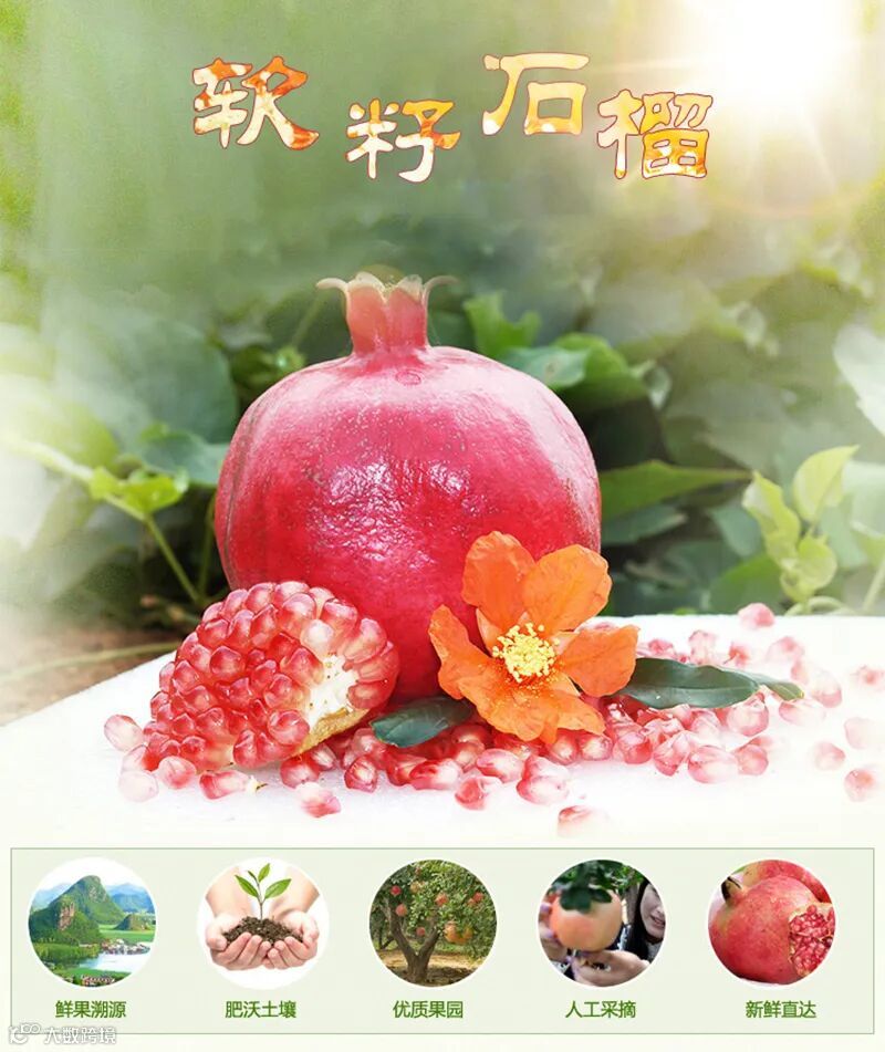 生态种植,因为吸取了山水的灵气与供养,不催熟,不早摘,每一颗都得到了充足的阳光照射,这些石榴从着自然的节奏,任风雨飘吹打,在原生态的优胜劣汰中进行了筛选,吃到您口中的个个都是自然的结晶.