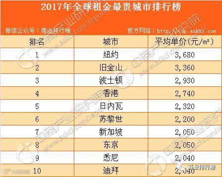 2016年全球租金最贵城市排行榜