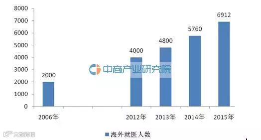 中国的海外医疗市场增长迅速,公开数据显示,中国每年接受海外医疗的患者数量已从2006年的2000万人次增长至2012年的4000万人次,年均复合增长率在20%左右,2015年我国海外就医人数达到了6912万人次。