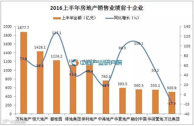 克而瑞等机构日前发布的上半年市场报告显示,2016上半年销售金额排名前十的房企分别是万科地产、恒大地产、碧桂园、绿地集团、保利地产、中海地产、华夏地产、融创中国、华润置地和万达集团。其中,万科、恒大的销售业绩明显高于其他千亿级房企,与绿地、保利、中海等千亿房企保持了200亿以上的差距。前十房企中,销售金额同比下滑的仅万达集团一家。随着行业集中度的进一步提升,加速了房企优胜劣汰,万科、恒大两强争霸的行业格局日渐清晰。
