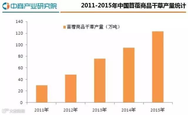 由于国家已验收150万亩优质高产苜蓿示范项目,苜蓿面积总体上是有所增加,2015年流通的商品苜蓿草总产量达到123万吨。