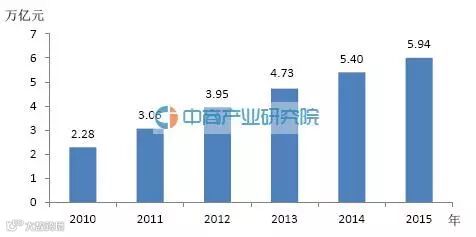 图:“十二五”期间年度全国林业产业总产值图