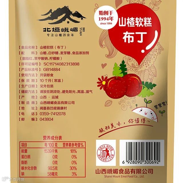 北恒峨嵋山楂工厂始创于1994年,拥有着20余年的生产历史,专注山楂20年,坚持引进先进生产模式,采用独立包装,严格把控产品卫生,只为把安全健康的美食带给您!