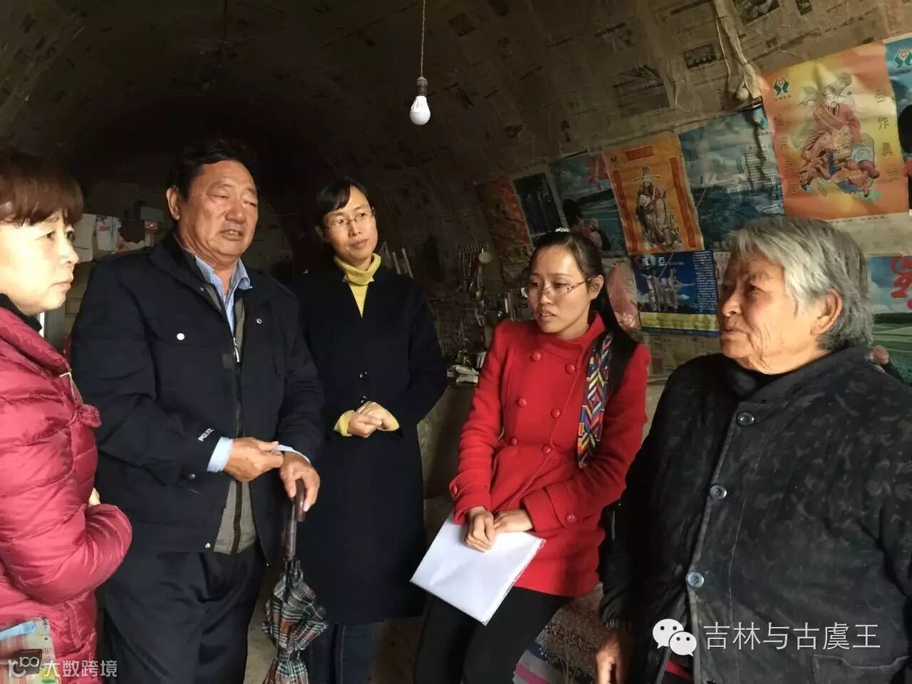 在83岁的老村干部毛金锁家,老毛74岁的老伴罗春娥一见老李进门,就开心地喊他,一边迎我们进窑洞,一边指着老李说,老李与他的工作组都是好人,每个礼拜差不多都有人上地里干活,前几天那个民航局长又来看我,每次来都给几百块钱。我不要,非要给。你们说我这一把年纪了,给国家啥也做不了,又是给钱又是给东西,在老年灶吃饭还一分钱不花,别的村多少都交钱,就我们村不交。村里人都说毛家山好福气,说这个工作队是毛家山的第六批知青,说老李是“郝(广杰)老师第二”。我们查访的功夫,老李也认真检查了一下窑洞,没发现漏雨。他告诉罗大妈,“嫂子,过几天,局里就派人来,把你们的窑洞全部整修一下,以后再下雨,就不担心了。”谁知,罗大妈一听这话,反而恼了,说:“我不能让你们再花钱,我们都这把老骨头啦,谁挣钱都不容易,老在我们身上花,您要整,我要跟您吵架,不能让您整。”老人朴实的话逗得我们都笑了。