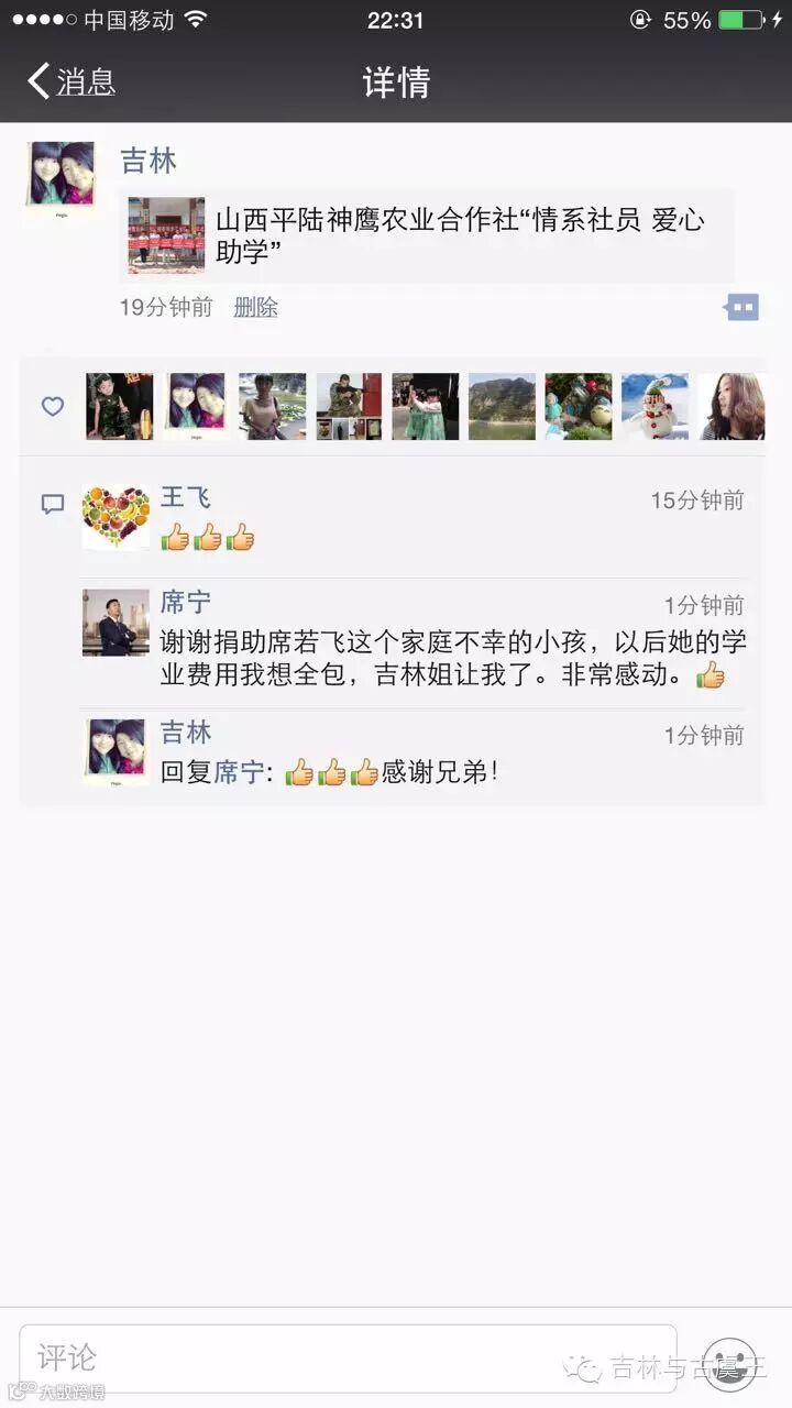 将助学行照片通过公众号发布后的几分钟内,便收到了席宁的信息,要求资助席若飞以后的学业费用。让我倍受感动,与良善者为伍,是我一生孜孜以求的。