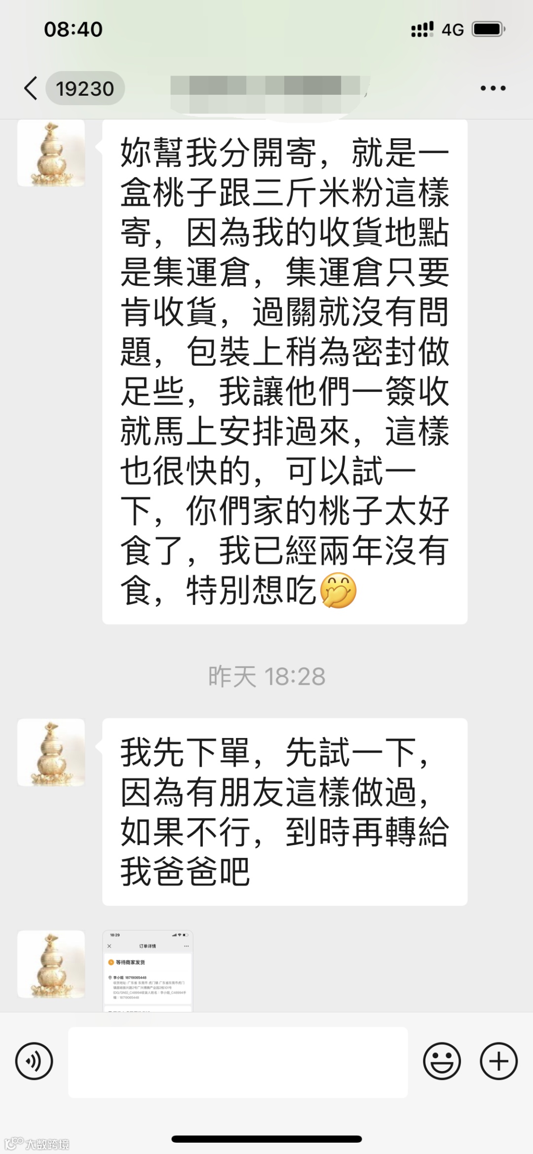 这位姐姐一直都是我们大红蜜桃的铁粉,海关的原因没能如愿以偿,今年蜜桃上市,已经迫不及待的咨询想要订购。