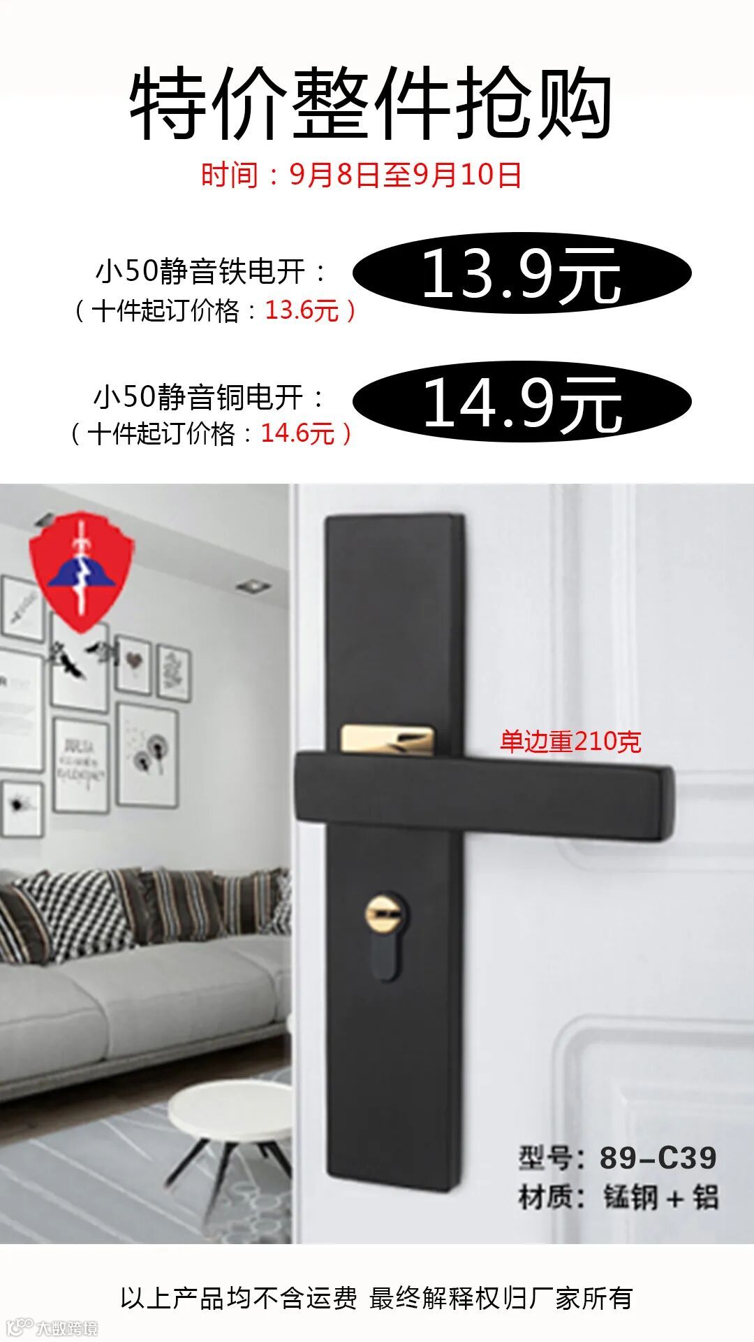 黑色锁具特价13.9元(特价款式时间9月8日至9月10日终止)