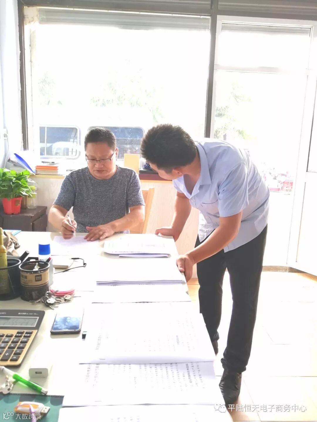 李股长在公司检查农业标准化资料: