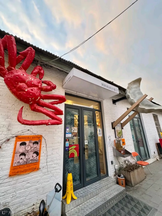 北京的餐创联会员就曾推荐过一家名叫胶东刘妈妈肉汁饺子的人气饺子馆,位于798艺术区店则将放大的饺子、螃蟹摆放在门头位置,成为整条街的显眼包